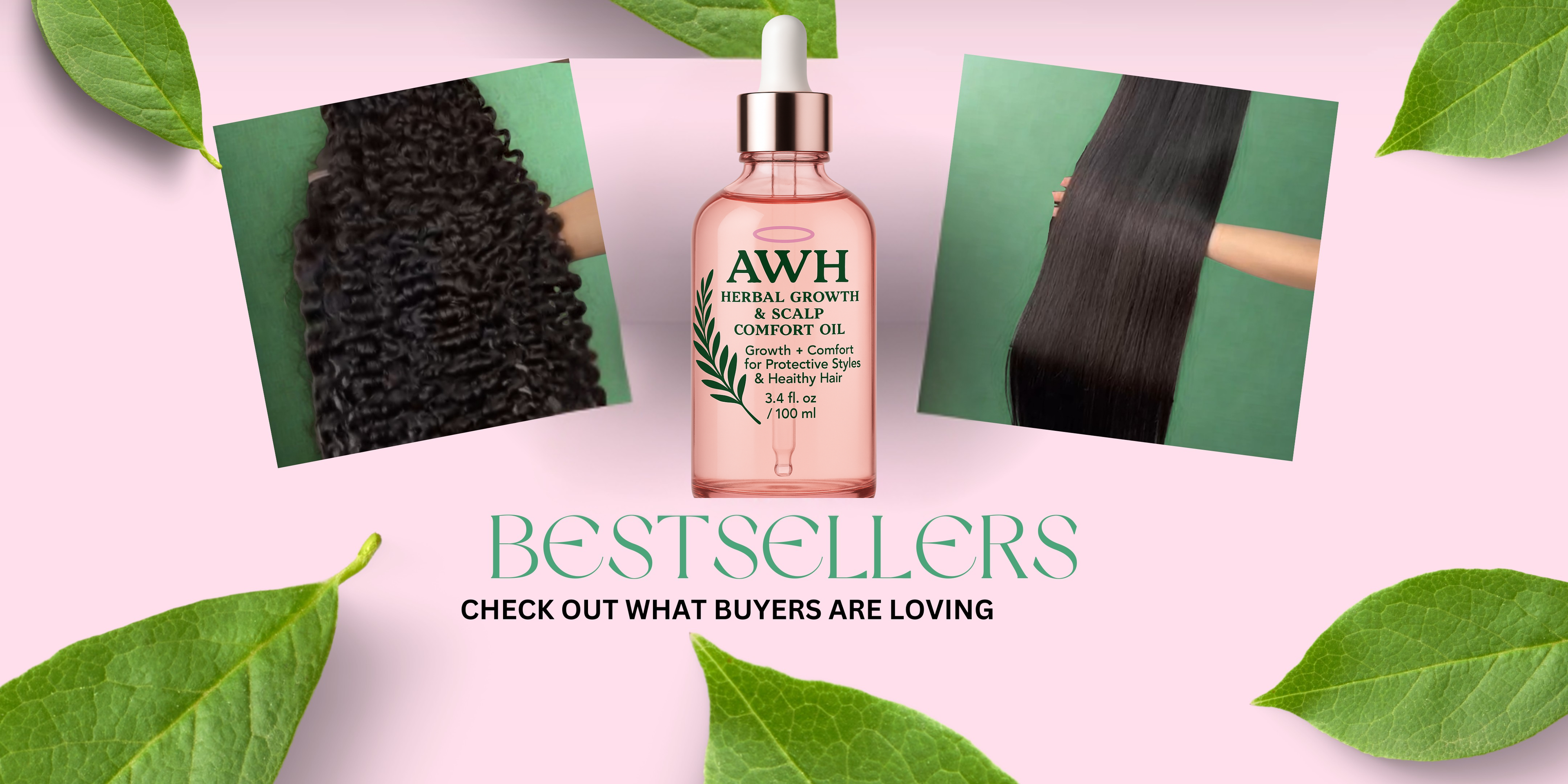 Formulated with pure, natural ingredients, our AWH Growth Oil deeply nourishes the scalp and stimulates healthy hair growth. Infused with botanical oils and essential nutrients, it strengthens roots, promotes moisture balance, and helps reduce breakage—leaving your hair vibrant, hydrated, and thriving from root to tip.